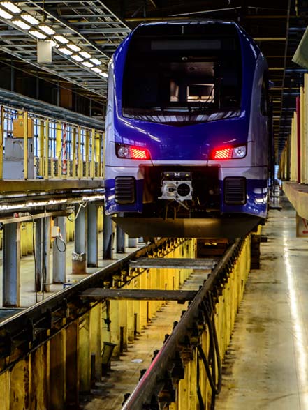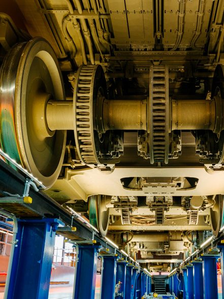 Eine weitere Möglichkeit ist der Einsatz von autonomen, motorisierten Hebebühnen, mit denen wir Zugang zur Unterseite der Züge haben, um sie zu bearbeiten oder auszutauschen.
